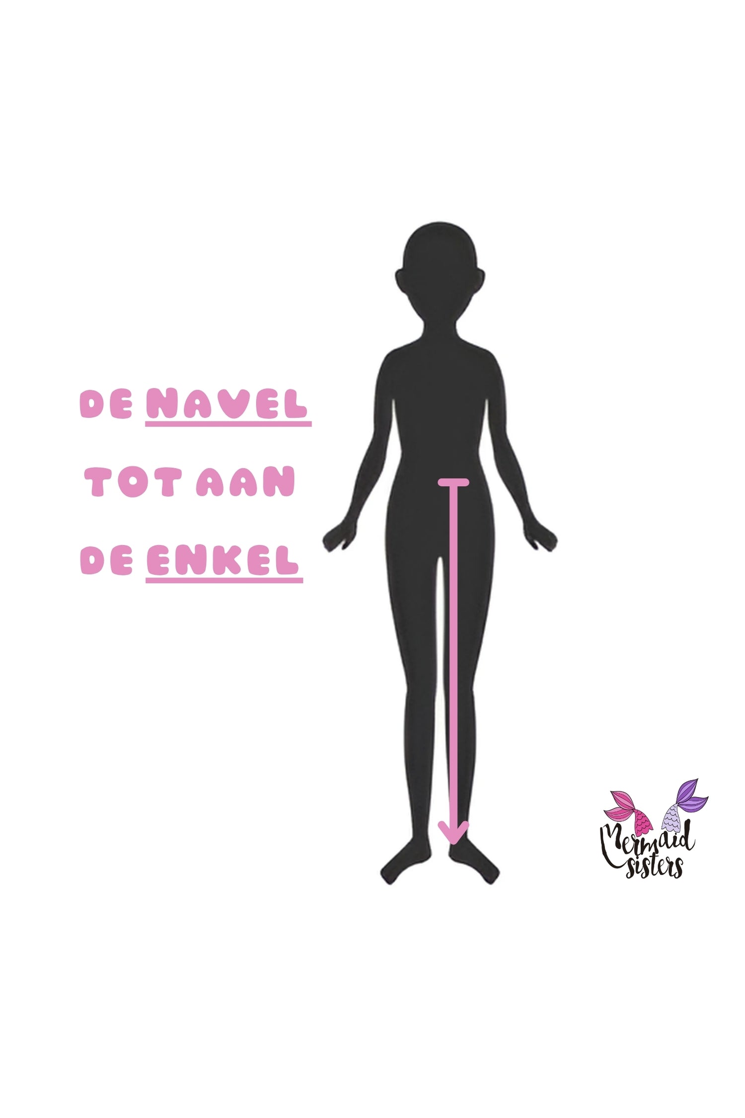 De zeemeerminnenstaart moet tijdens het zwemmen niet af kunnen zakken. Daarom is het belangrijk dat je kijkt naar de omtrek van de taille. Je taille meet je over je navel. Let erop dat je de centimeter niet te strak trekt, houd een vinger tussen je lijf en de centimeter. Nadat je de taille hebt gemeten ga je door met het meten van de afstand van de navel tot de enkel.