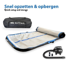 Zoek je een turnmat waarmee je overal kunt trainen, thuis of buiten? Met de MMS AirTrack Turnmat 10 cm haal je een complete professionele set in huis bestaande uit een turnmat, elektrische pomp en stevige draagtas. Kies jouw ideale lengte en kleur en train waar en wanneer je wilt met vertrouwen en comfort.